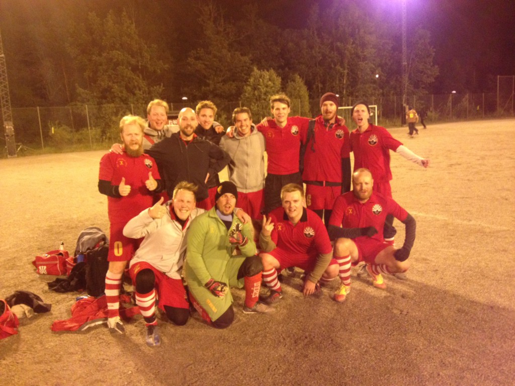 Innan halvleken var över vände dock åter tidvattnet i och med att öronen lyckades trycka in ännu ett mål. Lagen gick således av planen med två mål var gjorda. Det pratades i det röda lägret om att vi var bra när vi höll i bollen men mindre bra när vi inte gjorde det. Därför beslutades det att vi skulle ha som målsättning att hålla i bollen så mycket som möjligt.