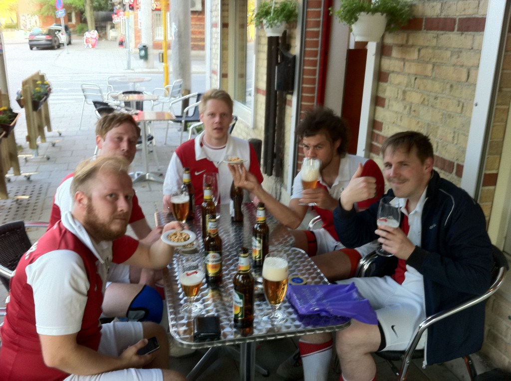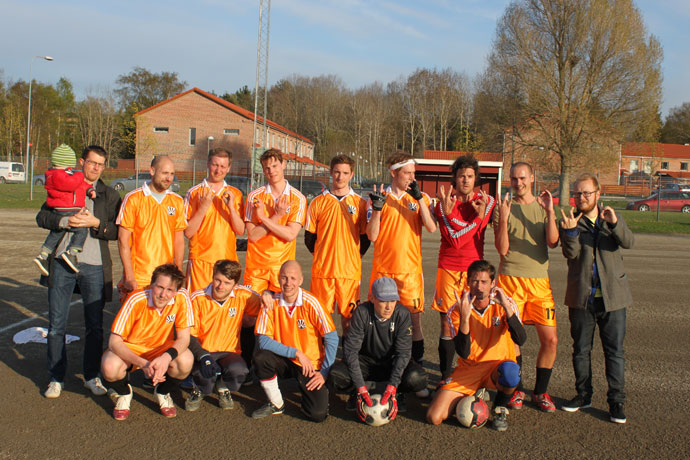 Captain leder laget med 2 touch spelövning som uppvärmning där samtliga deltar. Ass Coach (som dök upp i tid) gör en snabb genomgång och BAM så ställer Kontra upp sig för att ta sig an serieledande Bajen Fans.
